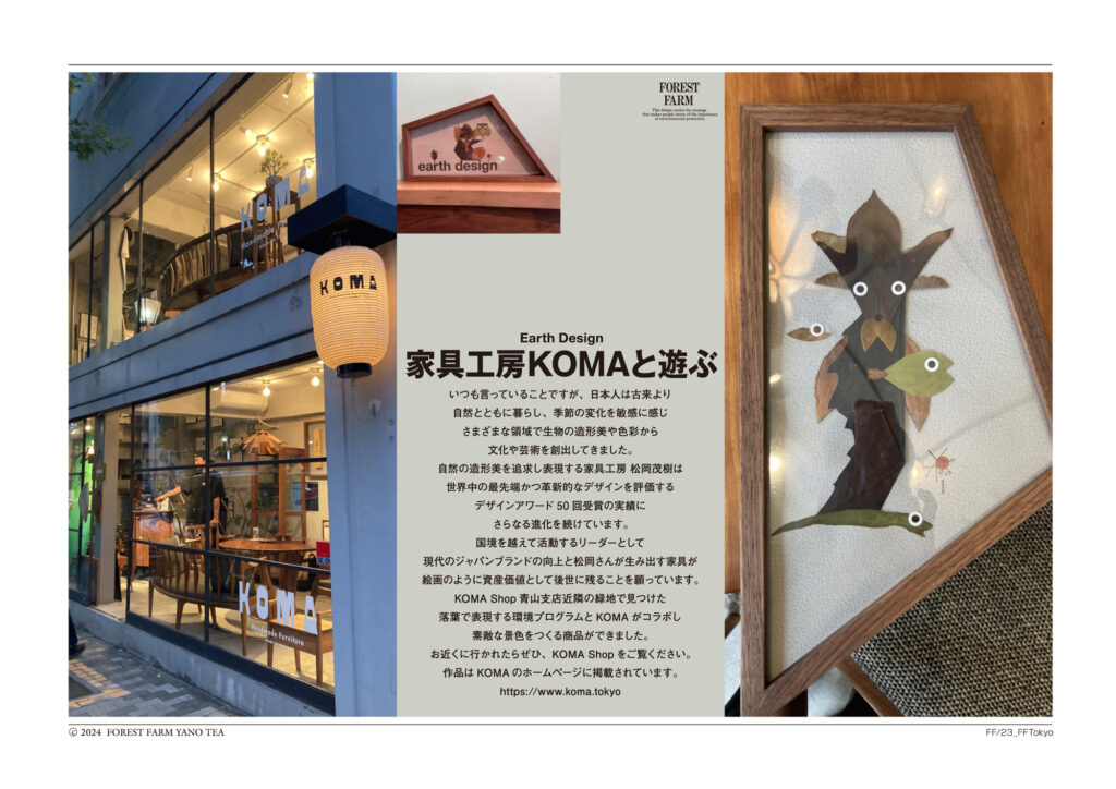 KOMA Shop青山支店近隣の緑地で見つけた落葉で表現する環境プログラムとKOMAがコラボし素敵な景色をつくる商品ができました。
